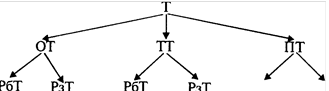 В научном исследовании, педагогической и учебной практике часто возникают задачи, в ходе решения которых требуется хранить в памяти большие объемы информации о предметах некоторого класса (множества). При этом все множество предметов этого класса должно быть легко обозримым. Именно для этого предназначен вид деления, который называется классификацией. Если дано некоторое множество объектов, то можно сказать, что классификация решает тройственную задачу: а) упорядочить это множество; б) сделать его хорошо обозримым; в) облегчить доступ в памяти к любому виду предметов данного множества. Классификация получается в результате последовательного многоступенчатого деления. Деление, последовательно производимое по систематически выбираемым основаниям, дает в результате виды предметов, для кото рых четко определено, какие из интересующих нас признаков им присущи, а какие — нет. Таким образом, эти виды получают в некотором смысле максимально полное описание. Виды, охарактеризованные множеством признаков, служащих основаниями последовательного деления, будем называть классами. Отсюда становится понятным само название логической операции, которую мы рассматриваем в этом параграфе, — классификация. Классификация состоит в распределении элементов данного множества на точно охарактеризованные с точки зрения интересующих нас признаков классы. Классификация — систематическое распределение элементов данного множества по классам, возникающее в результате последовательного многоступенчатого деления. Такое последовательное многоступенчатое деление имеет древовидную структуру. Пример. Рассмотрим классификацию треугольников по двум основаниям: а) величине углов и б) соотношению сторон. По величине углов треугольники (Т) делятся на остроугольные (ОТ), тупоугольные (ТТ) и прямоугольные (ПТ). По соотношению сторон разделим треугольники на равнобедренные (PбT) и разносторонние (РзТ). Для того, чтобы получить классификацию, следует соединить два эти деления в последовательное двухступенчатое деление, например, таким образом: