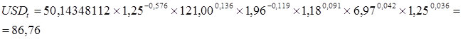 Задача 18.Використовуючи дані попередньої задачі, обчисліть значення індексу долару (USDX) станом на 31.01. 2007 р. Курс євро до долару США приймемо рівним 1,25. Рішення: Поточне значення індексу долару (USDX) – це середній показник зміни курсів шести світових валют (японської ієни, євро, британського фунту, канадського долару, швейцарського франку й шведської крони) по відношенню до долару США.