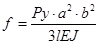 По паспортным данным на станок 16К20 подача на один оборот шпинделя на девятой ступени – 0,2 мм/мин . [14 стр.163] Определим правильность выбранных режимов резания путем проверки на жесткость. Под действием силы резания – деталь прогибается. Вычислим прогиб детали. Деталь в станке имеет закрепление в центрах. Максимально возможный прогиб можно получить , если рассмотреть как консольное закрепление относительно большего расстояния до одного из центров , в нашем случае – это плавающий центр. Формула для определения прогиба в этом случае имеет вид: