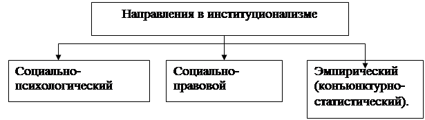 Рис. 8 - Направления в институционализме Все направления институционализма, несмотря на общность фундаментальных положений, значительно отличаются друг от друга в подходах, методике анализа и трактовке причин и следствий экономических явлений, роли и значения отдельных институтов в жизни общества. Черты «институционализма», относящиеся к области методологии (рис. 9).