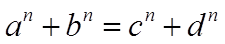 Мне в вышеизложенное и самому не на все 100% верится. Поэтому я взываю к коллективному разуму. Главное сомнение же вот в чём: В таком разе все уравнения с нечётным числом членов решений в натуральных числах не будут иметь, ну или не так строго, могут не иметь. Т.к. нет понижения формы у одного из членов уравнения. Как, например, у уравнения (2) бесконечное число сочетаний натуральных чисел a, b, c, dсуществует, тогда, как у уравнения