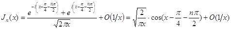 Отже, маємо шукане асимптотичне подання беселевої функції першого роду із цілим індексом для більших значень аргументу: