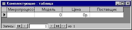 Одновременно с этим в форме можно разместить специальные элементы управления (счетчики, раскрывающиеся списки, переключатели, флажки и прочие) для автоматизации ввода. Преимущества форм раскрываются особенно наглядно, когда происходит ввод данных с заполненных бланков. В этом случае форму делают графическими средствами так, чтобы она повторяла оформление бланка - это заметно упрощает работу наборщика, снижает его утомление и предотвращает появление печатных ошибок. На сопроводительном рисунке приведен пример простейшей формы для ввода данных.