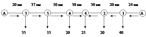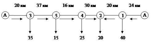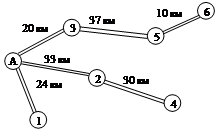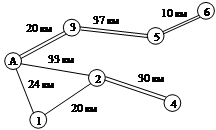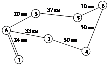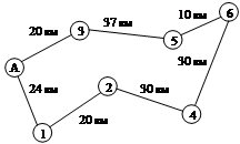 Рисунок 1.1 – План проектируемого района Таблица 1.2- Расстояния между узлами