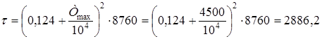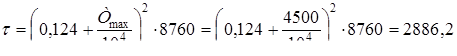 По [15] принимаем удельную стоимость потерь энергии: β = 1,75 ∙ 10-2 руб/кВт∙ч. Число часов максимальных потерь в году определяют по формуле: