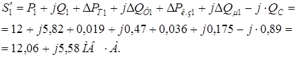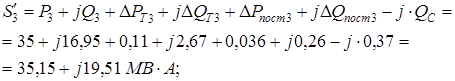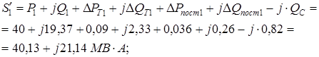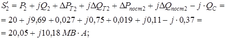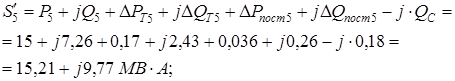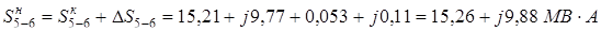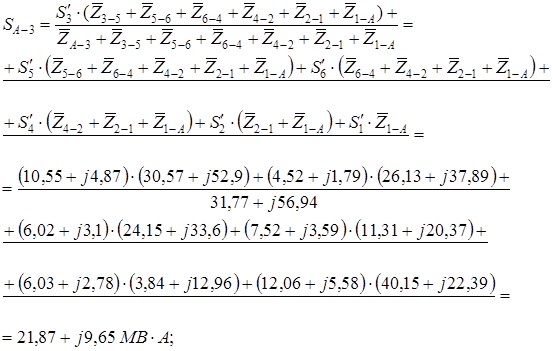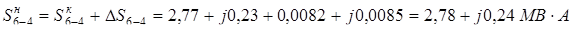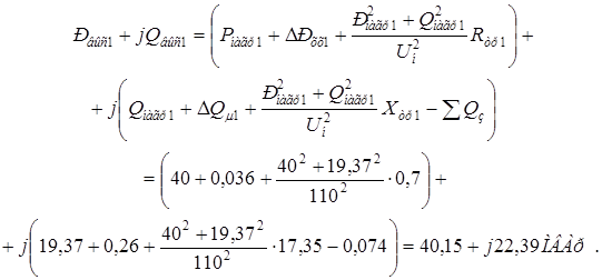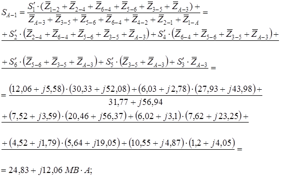 Находим действительное распределение мощностей с учетом потерь мощности в линиях. Расчет начинаем с точки раздела мощностей.
