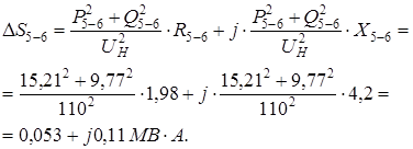 Таблица 6.6 – Параметры линий и потери мощности для варианта 5