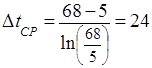 Среднюю разность температур потоков определим как среднелогарифмическую между большей и меньшей разностями температур теплоносителей на концах аппарата: