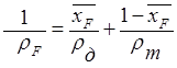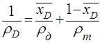 Плотность физических смесей жидкостей подчиняется закону аддитивности: ρсм=ρ1*xоб+ρ2(1-xоб) (2.17) Найдем плотности жидкости ρд 100º = 797 кг/м3 ; ρд 94.4º = 797+[(811-797)/10]*5.6= 804.8 кг/м3 ; ρд 90º = 811 кг/м3 ; ρд 97.9º =797+[(811-797)/10]*2.1= 799.9 кг/м3 ; ρт 80º = 808 кг/м3 ; ρт 94.4º = 788+[(808-788)/20]*5.6= 793.6 кг/м3 , ρт 100º = 788 кг/м3 ; ρт 97.9º = 788+[(808-788)/20]*2.1= 790.1 кг/м3 . [4] Объемную долю компонента в смеси рассчитывают по уравнению: