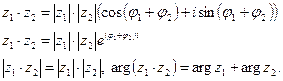 Деление . Модуль частного равен частному модулей, аргумент частного равен разности аргументов: