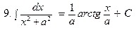 Таблица интегралов сложных функций