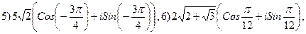 3.21 Представить в виде суммы более простых дробей: 1) 3.22 Решить уравнения: 1) 3.23 Построить на комплексной плоскости и представить в тригонометрической форме числа: 1) 5) 9) 5, 10) i. 3.24 Представить в показательной форме числа (указать главное значение аргумента):