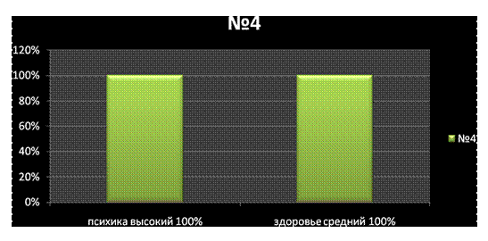 Интерпретация: У 100% испытуемых устойчивая психика, у 100% испытуемых преобладает средний уровень здоровья. «Оценка настроения №5».