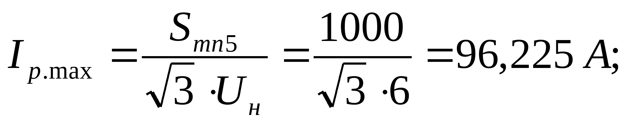 Расчетная нагрузка при кс=0,8 /3,477/ равна Принимаются два трансформатора ТМГ-100 кВА. При отключении одного трансформатора, второй будет загружен на 83,6/100=0,836, т.е. на 84%. 6.5.4 Выбор выключателей на 6 кВ. Для варианта № 1 Для линии ГПП – РП1, как для самой нагруженной Iав = 2 ∙ 608,79 = 1217,58 А; Iк2 = 9,178 кА; iуд = 21,416 кА; Вк = 59,807 кА2·с. Принимаем выключатель BB/TEL-10-12,5/1600-У2-45 для которого: Uн = 10 кВ ≥ Uуст = 6 кВ; Iном= 1600 А ≥ Iав = 1217,58 А; Iном.откл. = 12,5 кА ≥ Iпо = 9,178 А; Iдин = 52 кА ≥ iуд = 21,416 кА; I2тер х tтер= 202 х 3 кА2·с ≥ Вк = 59,807 кА2·с; Ввиду того, что расчетные токи будут в пределах найденного Iр для линии ГПП – РП1, для всех остальных ячеек отходящих линий принимается выключатель BB/TEL-10-12,5/1600-У2-45. 6.5.5 Выбор автоматических выключателей. Условия выбора: Iн.в ≥ Iр.max; Iн.р = Iн.в ≥ Iр.max; Выбираем автоматические выключатели серии «Электрон». Результаты выбора заносим в таблицу10. Таблица 17– Выбор автоматических выключателей