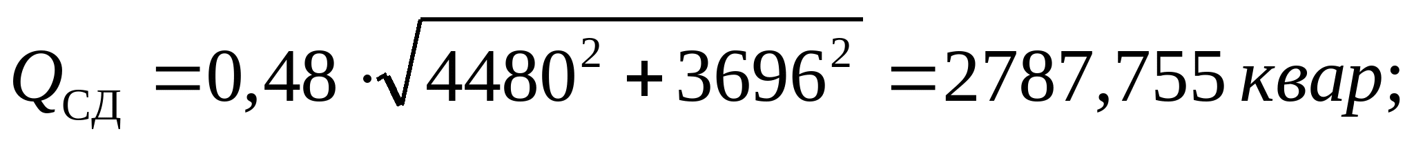 Для компенсации реактивной мощности определяется располагаемая реактивная мощность СД: