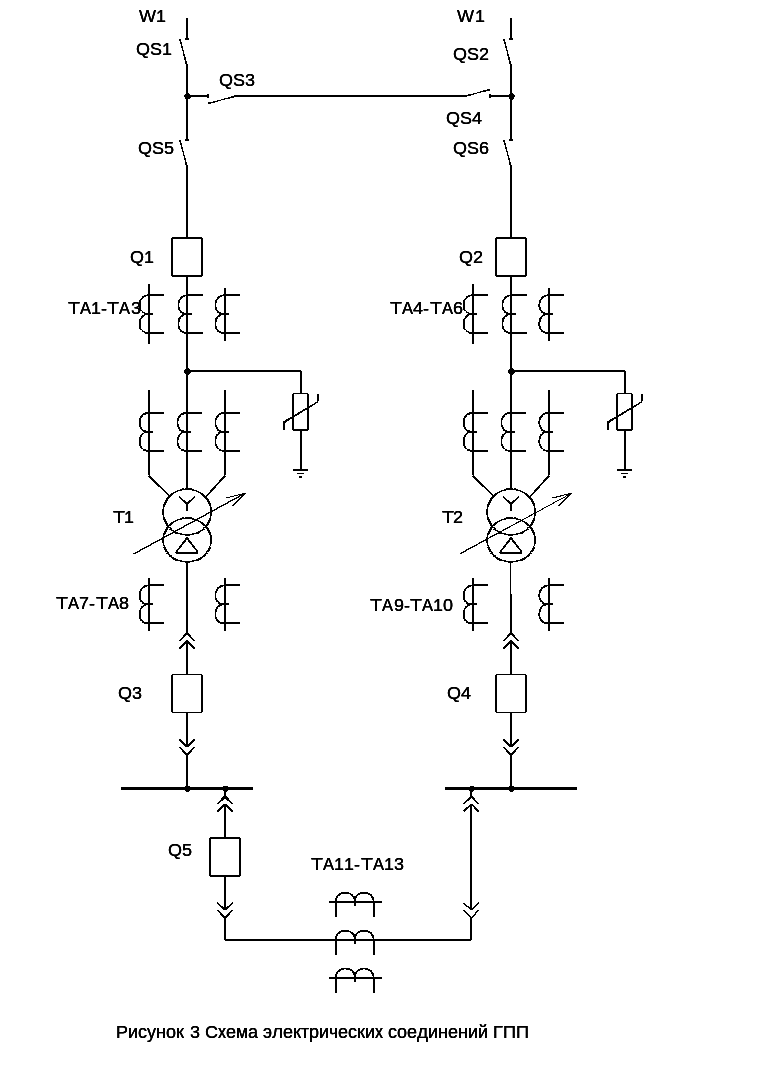 В нормальном режиме один из разъединителей перемычки должен быть отключен. Если этого не сделать то при к.з в любой линии (W1 или W2) релейной защитой отключаются обе линии, нарушая электроснабжение потребителей.