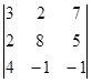 Рис.5. Алгоритм вычисления Программа нахождения произведения двух матриц CLS PRINT BBЕDИTЕ(A) INPUT "BBЕDИTЕ a11,a12,a13"; a11, a12, a13 INPUT "BBЕDИTЕ a21,a22,a23"; a21, a22, a23 INPUT "BBЕDИTЕ a31,a32,a33"; a31, a32, a33 CLS PRINT BBЕDИTЕ(B) INPUT "BBЕDИTЕ b11,b12,b13"; b11, b12, b13 INPUT "BBЕDИTЕ b21,b22,b23"; b21, b22, b23 INPUT "BBЕDИTЕ b31,b32,b33"; b31, b32, b33 CLS PRINT a11 * b11 + a12 * b21 + a13 * b31; a11 * b12 + a12 * b22 + a13 * b32; a11 * b13 + a12 * b23 + a13 * b33 PRINT a21 * b11 + a22 * b21 + a23 * b31; a21 * b12 + a22 * b22 + a23 * b32; a21 * b13 + a22 * b23 + a23 * b33 PRINT a31 * b11 + a32 * b21 + a33 * b31; a31 * b12 + a32 * b22 + a33 * b32; a31 * b13 + a32 * b23 + a33 * b33 END Результат: 2.1.3 Вычислить определитель