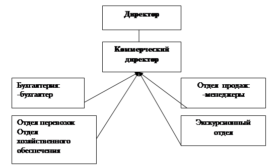 : В соответствии с потребностями клиента должны обеспечиваться высокие стандарты качества во всем, что делается в компании. Компания должна постоянно стремиться к снижению затрат, чтобы поддерживать приемлемый уровень цен. Заказы клиентов должны выполняться точно и в срок. Поставщики и дистрибьюторы должны иметь возможность получать достойную прибыль. Компания несет ответственность перед сотрудниками, мужчинами и женщинами, которые работают в компании. Компания должна ценить индивидуальность в каждом из них. Компания должна уважать их достоинство и признавать их заслуги: Схему организационной структуры приведена на рисунке 4. Ответственность в компании распределяется следующим образом: Директор в ответе за всю компанию и за ее функционирование, коммерческий директор отвечает за коммерческое функционирование компании, менеджеры отвечают перед директором и клиентами за ведение заказов. Чем выше позиция руководителя, тем выше его ответственность. Все нормы, правила и процедуры не противоречат ГК РФ и ТК, а так же не противоречат Уставу компании. Все процедуры имеют формальный характер. Рассмотрим некоторые правила компании: работа начинается с 9.00 и до 18.00; обед длится не более 1-го часа, но кто-то обязательно должен оставаться в отделе во время обеда; каждую неделю в среду происходит встреча с руководителем и менеджерами, с отчетами за проделанную работу за неделю. Производство - Каждый менеджер-специалист составляет и рассчитывает туры, разрабатывает корпоративные, мероприятия и туры. Все они отвечают за калькуляцию данных и услуг. Поставщиков к компании хватает, за счет них компания может вырабатывать выгодные цены; - Хозяйственный отдел отвечает за снабжение персонала, транспортный отдел так же отвечает за распределение работы курьеров; - В компанию поступает заявка, которая обрабатывается менеджером и предоставляются услуги клиенту по этой заявке; - В компании есть продаж, который заключает договора и создает новые уникальные продукты, а так же работает с Российскими направлениями, такими как Ростов-на-Дону; - Руководство следит за качеством представленных услуг. Маркетинг Компания выбрала стратегию третьего подхода фиксации определенного сегмента рынка и концентрации усилий фирмы на выбранном рыночном сегменте, а именно - и incentive-туризме, vip, лечебно-оздоровительный и образовательный туризм. Фирма досконально выясняет потребности сегмента рынка. Сегмент рынка обращен на следующих потребителей: - государственных чиновников; - научных деятелей; - предпринимателей; - топ-менеджеров и т.д. В этом случае фирма стремиться к снижению издержек. Фирма строит свою деятельность прежде всего на анализе потребностей клиентов сегмента рынка. В своих намерениях исходит не из потребностей рынка вообще, а из потребностей вполне определенных или даже конкретных клиентов. Политика ценообразования – следование за ценовым лидером. Фирма ООО «МЭФ-Тревелер» предлагает скидки для своих корпоративных клиентов. Цена соответствует качеству услуги и она конкурентоспособна. Организация выбрала вторую эталонную стратегию - стратегию интегрированного роста. Обычно фирма может прибегать к осуществлению таких стратегий, если она находится в сильном бизнесе, не может осуществлять стратегии концентрированного роста и в то же время и