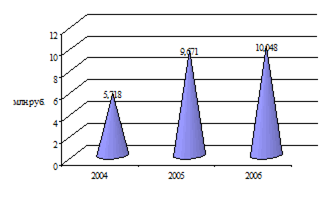 Рисунок 4 – Расходование средств территориальными фондами обязательного медицинского страхования за 2004-2006 гг. Представленная динамика расходования средств обязательного медицинского страхования территориальными фондами отражает рост данного показателя. В 2005 году этот показатель увеличился по сравнению с 2004 годом на 10,4%, в 2006 году по сравнению с 2005 годом – на 11,2%. Таким, образом, с каждым годом потребность в средствах обязательного медицинского страхования увеличивается.
