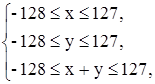 По умолчанию целые десятичные константы имеют тип int. Поэтому все целые числа должны содержаться в диапазоне -32758… 32757. Например, запись x = 100000 будет ошибочна независимо от типа переменной x. Для обозначения целой константы типа long используется суффикс l. Тогда инициализация longx = 100000l будет корректна. Компилятор не проверяет выход результата целочисленного выражения за диапазон типа. Запись longx = 20000 + 20000 будет ошибочна, так как 40000 не содержится в диапазоне типа int. Это будет «хорошо скрытая» ошибка. Реально x будет содержать значение Построим область корректного сложения для типа char. char x, y, z; x = y = 100; z = x + y; Нарисуем в системе координат (x, y) множество, для которого z будет содержать корректный ответ. Имеем систему
