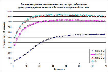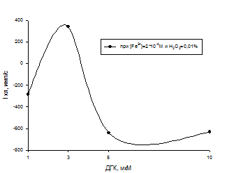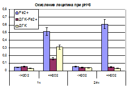 Таким образом, наличие прооксидантной активности ДГК можно ожидать в условиях высоких значений pH, а так же в присутствии металлов переменной валентности, но уже в кислых растворах.