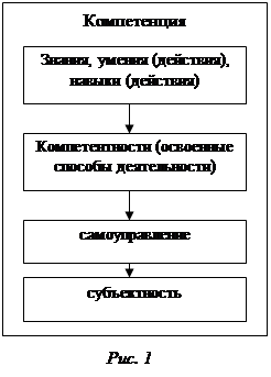 а) является интегрированной (см. рис. 1), б) проявляется ситуативно, в) существует как потенциал, достраиваясь до конкретного содержания и проявления в конкретной ситуации. Компетентность: а) является интегрированной (см. рис.1), б) в отличие от элемента функциональной грамотности позволяет решать целый класс задач, в) в отличие от навыка – осознана, г) в отличие от умения – переносима (связана с целым классом предметов воздействия), совершенствуется не по пути автоматизации и превращения в навык, а по пути интеграции с другими компетентностями: через осознание общей основы деятельности наращивается компетенция, а сам способ действия включается в базу внутренних ресурсов, д) в отличие от знания существует в форме деятельности (реальной или умственной), а не информации о ней» [16]. В работе мы будем пользоваться определением понятия компетентность как результата образования. 1.2. Взгляды на реализацию компетентностного подхода в школеВ науке нет общего подхода к понятию компетентность, каждый автор понимает его по-своему. В этом широком контексте трактовки компетентности в мире продолжается работа по изменению содержания стандартов и процедуры аттестации преподавателей. В этом же контексте в России в 2001 году были сформулированы основные положения компетентностного подхода в образовании, узловое понятие которого – компетентность. Было подчеркнуто, что это «понятие шире понятия знания, или умения, или навыка, оно включает их в себя (хотя, разумеется, речь не идет о компетентности как о простой аддитивной сумме знания–умения–навыка, это понятие несколько иного смыслового ряда). Понятие «компетентность» включает не только когнитивную и операциональную – технологическую составляющие, но и мотивационную, этическую, социальную и поведенческую»[15]. Приведём некоторые взгляды учёных на реализацию компетентностного подхода в образовательных учреждениях (по материалам IX Всероссийской научно-практической конференции «Педагогика развития: ключевые компетентности и их становление» [17]. Т. М. Ковалева (доктор педагогических наук, старший научный сотрудник Института теории образования и педагогики РАО, г. Томск) считает, что компетентностный подход дает ответы на запросы производственной сферы. Применительно к образованию его можно рассматривать лишь как один из возможных подходов. Д. Б. Эльконин (доктор психологических наук, профессор, вице-президент Международной ассоциации развивающего обучения, г. Москва) представляет компетентность как радикальное средство изменения формы образования. В. В. Башев (кандидат психологических наук, директор Красноярской гимназии «Универс» № 1) называет ключевой характеристикой компетентности возможность переносить способности в условия, отличные от тех, в которых эта компетентность изначально возникла. Ю. В. Сенько (доктор педагогических наук, заведующий кафедрой педагогики Алтайского государственного университета, академик РАО, г. Новосибирск) высказал предположение, что для определения базовых профессиональных компетенций нужно выделить несколько основных блоков: ценностей и идей образа человека, технологий, проектной работы и реализации своего замысла, экспертной оценки, учения и обучения. А. М. Аронов (кандидат физико-математических наук, заведующий кафедрой педагогики высшей школ
