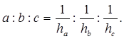 Аналогично: Задача 2. Докажите, что стороны треугольника обратно пропорциональны его высотам, то есть: