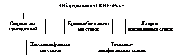 Рисунок 3.1 – основные задачи ремонтно-механической мастерской Механики, работающие в ремонтно-механической мастерской, каждое утро совершают плановый осмотр оборудования. Если какое-то оборудование вышло из строя, то механики осуществляют его ремонт. Если в мастерской отсутствуют какая-нибудь деталь необходимая для ремонта, то главный механик заказывает его начальнику материально-технического снабжения[3] . Раз в месяц механики осуществляют профилактическую проверку оборудования, его промывку, смазку и другие профилактические операции. Форма организации ремонта на ООО «Рос-Мебель»- планова-предупредительная, по графику. Планово – предупредительный ремонт осуществляется согласно паспорту оборудования или согласно установленным предприятием нормам осмотра и ремонта агрегатов, машин и деталей. Нормы осмотра и ремонта агрегатов, машин и деталей закреплены и указаны в регламенте предприятия. К общезаводским подразделениям относятся: ремонтное хозяйство, энергетическое хозяйство, транспортное и складское. ППР на ООО «Рос-Мебель» осуществляется по плану-график разработанному на основе нормативов ППР: – продолжительности ремонтного цикла – продолжительности межремонтных и межосмотровых циклов; – продолжительности ремонтов; – категорий ремонтной сложности (КРС); – трудоемкости и материалоемкости ремонтных работ. Оборудование применяемое в технологическом процессе на ООО «Рос-Мебель» представлено в таблице №3.1. Таблица 3.1 – Оборудование ООО «Рос-Мебель»