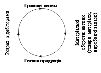 Рис.2. Зміна форм оборотних активів у процесі господарського обороту підприємства. Схема руху оборотних активів у процесі господарської діяльності підприємства (рис.2) відображає перехід оборотних активів з грошової форми в матеріальну, а потім знову у грошову. Вона наочно показує значення якості оборотних активів, тобто їх стан, структуру, ефективність використання. Якісний стан оборотних активів характеризується їх відповідністю встановленим нормативам (за нормованими оборотними активами ); структура – відсутністю простроченої та сумнівної заборгованості; ефективність використання або ліквідність – прискоренням оборотності, ступенем ліквідності та рівнем рентабельності. Зовнішній аналіз оборотних активів обмежений законом комерційної таємниці і не допускає оприлюднення нормативних і планових показників оборотних активів. він оперує лише узагальненими показниками публічної фінансової звітності. Лише при внутрішньому аналізі можна виконати усю програму дослідження якості оборотних активів та вплив їх використання на фінансовий стан підприємства. В процесі внутрішньогосподарського аналізу, крім нормативів та інших показників бізнес-плану, використовують дані аналітичного бухгалтерського обліку товарів, матеріалів, запасів, готової продукції, розрахунків з дебіторами, грошових коштів та ін. Необоротні активи включають статті, що відображають вкладення коштів в основний капітал, довготермінові інвестиції в акції та облігації, а також в нематеріальні активи. Від того, наскільки оптимальне співвідношення оборотного та необоротного активів, скільки коштів вкладено в запаси матеріалів, а скільки їх у грошовій формі, значною мірою залежать результати виробничої та фінансової діяльності, а звідси – і фінансовий стан підприємства. Дамо оцінку змінам, що відбулися в складі та структурі капіталу підприємства за даними табл.3. Загальний капітал підприємства за звітний період збільшився на 2112.5 тис. грн. ,або на 16.32%, У тому числі за рахунок збільшення обсягу необоротних активів – на 496.34 тис. грн., або на 7.38%, приросту оборотних активів – на 1616.16 тис. грн., або на 26.02%. Тобто за звітний період в оборотні активи було вкладено у 3.26 рази (1616.16:496.34) більше коштів, аніж у необоротні активи. Зміна структури активів підприємства в бік збільшення частки оборотних засобів може вказувати: · згортання виробничої бази; · викривлення результатів оцінки основних фондів унаслідок існуючого порядку їх бухгалтерського обліку; · відволікання частини поточних активів на кредитування споживачів товарів, робіт, послуг підприємства, дочірніх підприємств та інших дебіторів, що свідчить про фактичне відволікання частини оборотних коштів із виробничого циклу та інше. Підвищення суми необоротних активів вказує на інвестиційну діяльність підприємства. Після загальної оцінки динаміки складу і структури активів підприємства детально вивчимо стан, рух і причини зміни кожного виду майна: запаси, грошові кошти, дебіторська заборгованість. «Запаси» включають статті виробничих запасів, незавершеного виробництва та готової продукції. Виробничі запаси включають сировину, матеріали для упаковки, напівфабрикати. Ця стаття може носити назву і як товарно-матеріальні цінності. Незавершене виробництво включає засоби, вкладені в товари, що знаходят