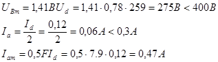 Визначимо орієнтовні значення параметрів вентилів та габаритну потужність трансформатора.
