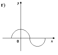 8. Укажите четную функцию. 9. а) y = sin x + tg x; б) y = sin x×tg x; в) y = cos x×ctg x; г) y = tg x + ctg x. 10. Укажите, какая из приведенных функций нечетная? 11. а) f(x) = в) f(x) = 10x + 10- x ; г) f(x) = x5 – 1. 12. Пусть f – четная функция на R, а g – нечетная функция на R. Какое утверждение истинно? а) f + g – функция четная; б) f – g – фуункция нечетная; в) f×g – функция нечетная; г) 13. Какие из данных множеств могут быть областями определения периодических функций? а) Q – множество рациональных чисел; б) (-¥; 0); в) множество интервалов вида (2pk, p(2k+1)), где k = 0, ±1; ±2… 14. Какая из периодических функций не имеет наименьшего положительного периода? а) y = sinx; б) y = {x}; в) y = 5; г) y = tg (80x + 3). 15. Какая из функций не является периодической? а) y = sin в) y = 16. Какие из следующих утверждений истинны? а) Если число T – период функции f, то число 2T также период этой функции. б) Если числа Т1 и Т2 – периоды функции f, то число (Т1 +Т2 ) также период этой функции. в) Если 2T – период функции f, то число T – также период этой функции. г) Если T – период функции f, то число -T – также период этой функции. Вариант IV 1. Какое равенство задает отношение, которое не является функцией? а) ln y = x; б) arcsin y = x; в) sin y = sin x; г) ey = arcsin x. 2. На каком из рисунков изображено множество точек координатной плоскости, которое можно рассматривать как график функции?