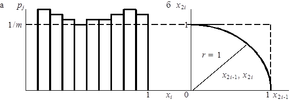 } может быть выполнена по гистограмме с присваиванием косвенных признаков. Суть проверки по гистограмме сводится к следующему. Выдвигается гипотеза о равномерности распределения чисел (0, 1). Затем интервал (0, 1) разбивается на m