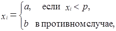 разрядах будет равно После нахождения теоретических и экспериментальных вероятностей P (j , l ) или чисел nj при различных значениях l £ n гипотеза о стохастичности проверяется с использованием критериев согласия, которые подробно рассматриваются в курсе математической статистики. При анализе стохастичности последовательности чисел {xi } методом серий последовательность разбивается на элементы первого и второго рода (a и b ), т.е.