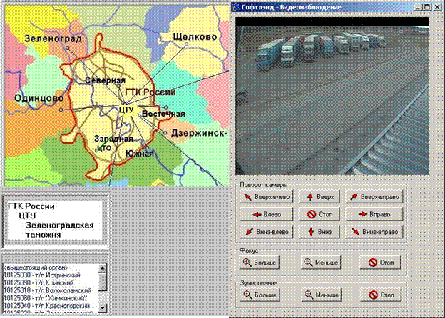 Форматы данных, передаваемых с этапа на этап таможенного контроля разработаны и утверждены ГНИВЦ, что позволяет применять данную систему в различной конфигурации, а также использовать аналогичные разработки. Централизованная проверка ГТД на достоверность, контроль ориентировок, заверение платежного документа (подтверждение поступления денег), списание средств по указанным платежным документам в момент выпуска ГТД, протоколирование действий инспекторов ведется на сервере таможни (управления). Система АИСТ-М имеет модуль видеонаблюдения, позволяющий осуществлять удаленное управление перемещением камеры и масштабирование изображения (рис. 24). Особенностью модуля является поддержка распределенной приоритетности.