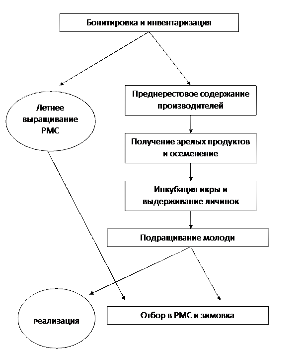 Характеристика прудов для выращивания осетров: Размеры: Дно ― твердое, неилистое или с небольшим количеством грунта. 3 ТЕХНОЛОГИЯ РАЗВЕДЕНИЯ РЫБЫ Рис 3.1 Схема технологического процесса
