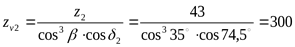 Затем по графику, построенному для колес с круговыми зубьями (рис.2.9 [1]) находят число зубьев z1. Т.о., z1=12. Минимальное число зубьев шестерни при u=3,57 и β=35° равно 8, следовательно, это условие удовлетворено. Число зубьев колеса z2=12∙3,57=43. Внешний окружной модуль передачи