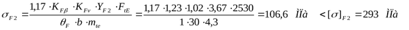 Напряжение изгиба в зубьях шестерни: