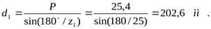 Таким образом, 3.4 Размеры звездочек Делительный диаметр малой звездочки: Делительный диаметр большой звездочки: Диаметр выступов малой звездочки: