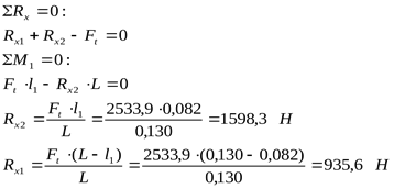 5.4.1 Определение сил, нагружающих подшипник Реакции от окружной силы: