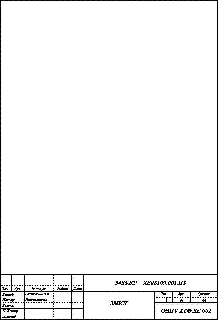 9 ВСТУП…………………………………………………………………..….……7 1.ОРГАНІЗОВАНІ ДЖЕРЕЛА ВИКИДУ………………………………...……9 1.1. Розрахунок розсіювання викидів з одиночного джерела……...…….6 1.2. Знаходження гранично допустимого викиду……………………..…13 1.3. Визначення границь санітарно-захисної зони для підприємств…...14 1.4. Розрахунки…………………………………………………….….……15 Висновок до розділу 1…………………………………………………………20 2. НЕОРГАНІЗОВАНІ ДЖЕРЕЛА ВИКИДУ…………………..……………21 2.1. Визначення кількості шкідливих речовин, що поступають через нещільності фланцевих з'єднань ……………………………………………..…….21 2.1.1. Порядок виконання розрахунку……………………………..……21 2.1.2. Розрахунки………………………………………………..…….….22 2.2. Випаровування з вільної поверхні рідини………………….…….……23 2.2.1. Порядок виконання розрахунку…………………………..………24 2.2.2. Розрахунки……………………………………………………… .. 26 2.3. Породні відвали. Розрахунок викидів твердих частинок…………….28 2.3.1. Порядок розрахунку………………………………………………28 2.3.2. Розрахунки…………………………………………………………30 2.4. Розрахунок викидів при згорянні твердих побутових відходів (ТПВ)30 2.4.1. Порядок розрахунку………………………………………………30 2.4.2. Розрахунки…………………………………………………………31 ВИСНОВКИ………………………………………………………………..….33 ВИКОРИСТАНА ЛІТЕРАТУРА…………………………………………….34