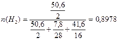 Щільність газової суміші в трубопроводі: ρсм =(197891,656+30549,993+162756,944)/106 =0,391мг/м3 Молекулярна маса газової суміші в трубопроводі: Мсм =2∙0,8978+28∙0,0099+16∙0,0923=3,5496 Об’єм газів у трубопроводі: V=0,785∙0,1242 ∙150=1,8105 м3 Кількість газової суміші: