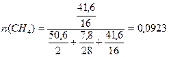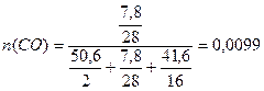 Абсолютний тиск: Рабс =209020+101325=310345 Па Парціальний тиск складових суміші: Р(Н2 )= 310345∙0,8978=278627,741 Па Р(СО)= 310345∙0,0099=3072,416 Па Р(СН4 )= 310345∙0,0923=28644,835 Па Концентрація складових газової суміші: