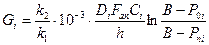 РН Д =24182,961 Па Парціальний тиск парів компонентів над сумішшю рідини: Рводи =0,7747∙9152,298=7090,285 Па РБ =0,1416∙28637,177=4055,024 Па РД =0,0837∙24182,961=2040,144 Па Коефіцієнт дифузії парів компонентів при заданій температурі: