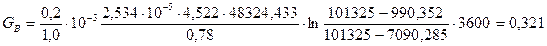 Парціальний тиск компонентів газової суміші у зовнішньому середовищі: Р0В =14,859∙0,5∙133,3=990,352 Р0Б =0 Р0Д =0 Кількість компонентів газової суміші, що виділяється з поверхні випаровування і поступає у зовнішнє середовище через люк: