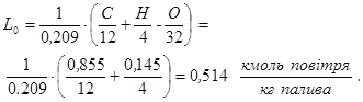 Дійсна кількість повітря, яка є в циліндрі для згоряння 1 кг палива М =a ·LO = 0,9·0,514=0,463 кмоль/кг . Загальна кількість свіжої суміші: