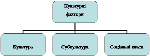 Рис. 1.2. Сучасна класифікація споживачів 1.2 Основні фактори впливу на купівельну поведінку Завдання маркетингу полягає у вивчені впливу факторів на вузькі сегменти ринку й створення найтиповішої картини такого впливу. На поведінку споживача впливають психологічні, особистісні, соціокультурні фактори, фактори ситуаційного впливу, а також комплекс маркетингу фірми-виробника певного товару (таблиця 1). Розглянемо фактори впливу більш детально. 1.2.1 Культурні фактори Найдужчий вплив на поводження споживача роблять культурні фактори, особливо загальний його рівень, приналежність до визначеної субкультури і соціального класу. (рис. 1.3)