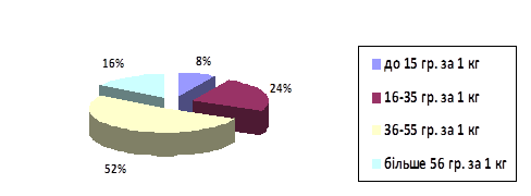 Рисунок 3.2. Мотиви здійснення вибору шоколадної продукції Найчастіше купуються цукерки вартістю 36–55 грн. за 1 кг. (рис. 3.3.)