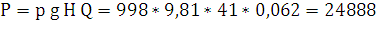 Примем КПД насоса = 0,7. Тогда мощность на валу насоса: