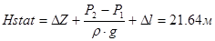 Получим: uI, 1=0.10 м/с; uI, 2=0.19 м/с; uI, 3=0.28 м/с; uI, 4=0.38 м/с; uI, 5=0.47 м/с; uI, 6=0.57 м/с; 1.2.2 Определение статического и скоростного напоров Напор, требуемый для преодоления сопротивления столба жидкости: