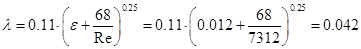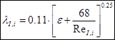 Поскольку все значения критерия Рейнольдса входят в интервал [ReКР1; ReКР2], то для смешанного турбулентного течения можно воспользоваться следующей формулой для расчета коэффициента трения: